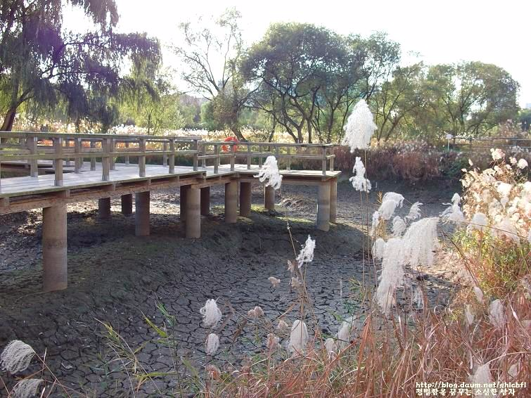 샛강 생태공원에는 억새풀도 조성되어 있어 흙길을 따라 걷다 보면 많은 새소리를 들을 수 있습니다. 억새풀 속에는 많은 아기새들이 있어 다른 곳보다도 유난히 새들이 시끄럽게 지저귑니다. 그러나 사람들이 그들의 곁에 너무 가까이 오면 조용해집니다. 자신들이 이곳에 없었음을 정적을 통해 알려주며 인간과의 거리를 유지합니다. 동물과 사람의 공존 거리를 알려주지만 인간에게는 호기심이 있어 억새숲을 들어가 새를 꼭 보려고 합니다. 그러나 대부분 새를 찾지 못하고 애꿎은 억새에게 화풀이를 하고는 다른 곳으로 가는 사람들을 종종 봅니다.
