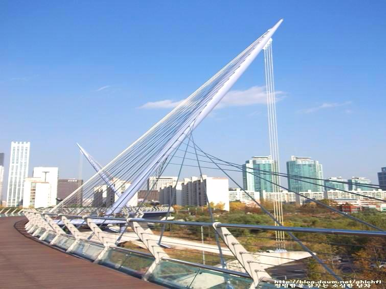 여의도 샛강다리는 기존의 한강 다리와는 다르게 곡선으로 만들어진 독특한 형태를 가지고 있습니다. 직선으로만 이루어져 효율성만을 강조한 일반적인 다리와는 달리 보행자들이 주위를 둘러보며 천천히 걸을 수 있도록 되었습니다. 샛강다리는 자전거도 타고 다닐 수 없이 오로지 도보를 통해서만 여의도에 들어가거나 나올 수 있습니다.