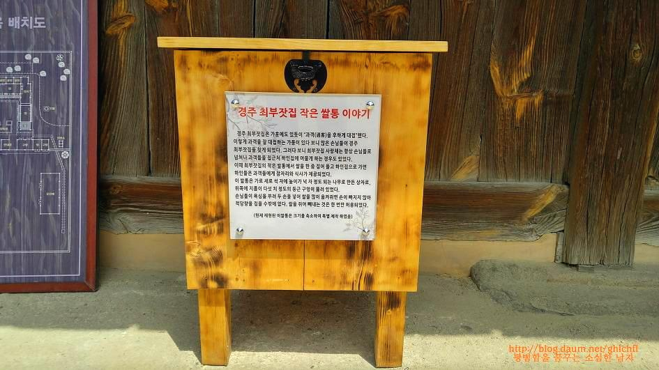 앞에 보이는 건축물이 쌀을 보관하던 창고로 12대 300년 동안 한 번도 곳간에 쌀이 없던 적이 없습니다. 단순히 곡식을 모와 보관했기 때문이 아닙니다. 그 이유는 곳간 앞 쌀통 이야기를 통해 알 수 있습니다. 곳간 앞 작은 쌀통에 있는 쌀은 누구든 가져갈 수 있도록 했습니다.