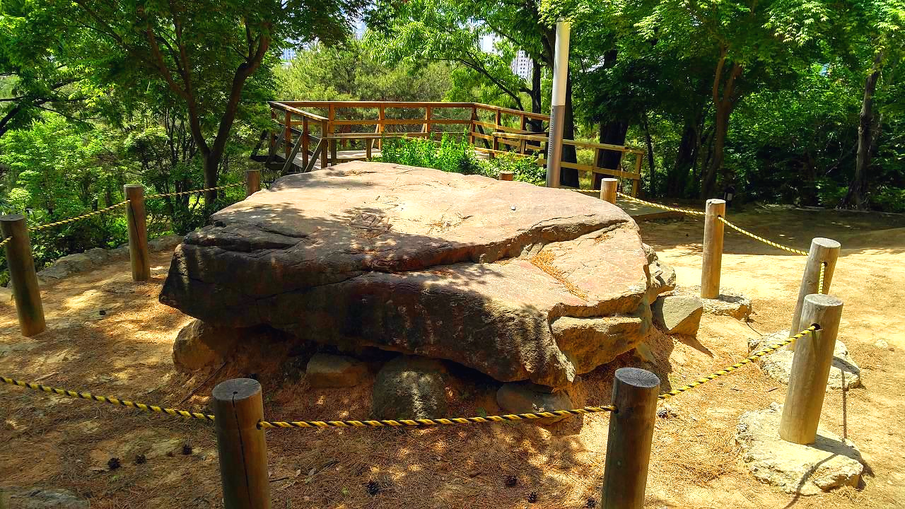 구지봉 옆에 놓여있는 고인돌은 구지봉은 가야가 세워지기 전부터 사람들에게 신성시된 장소였음을 보여줍니다. 고인돌은 청동기시대 계급이 발생하면서 지배자를 기념하기 위해 만들어진 무덤입니다. 지배자를 위해 만드는 장소인 만큼 아무 곳에 만들지는 않았겠죠. 최근까지도 무속인들이 정령이 깃들였다고 믿으며 기도를 올렸던 큰 돌들은 대부분 고인돌인 경우가 많습니다. 특히 구지봉 고인돌은 받침돌이 작은 남방식 고인돌로 한석봉이 글을 남기고 갈 정도로 예로부터 지역의 명소로 유명하지 않았을까 싶습니다. 구지봉에 올라 청동기시대의 유물을 볼 것이라고 예상하지 못했기에 더욱 반갑고 놀라웠는지 모르겠습니다.
