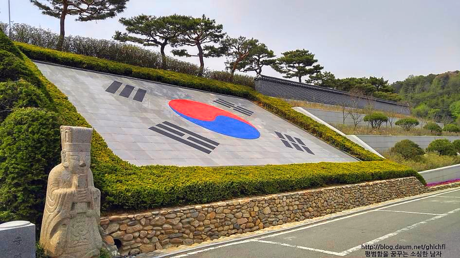현충원에는 대리석으로 만든 태극기가 있습니다. 단단하고 강인한 대리석으로 만든 태극기를 보며 우리나라가 앞으로도 당당하게 세상의 중심축으로 어려운 국가를 도와주며 홍익인간의 뜻을 펼쳐 모든 사람들이 사람답게 살 수 있는 세상을 만들면 좋겠습니다.