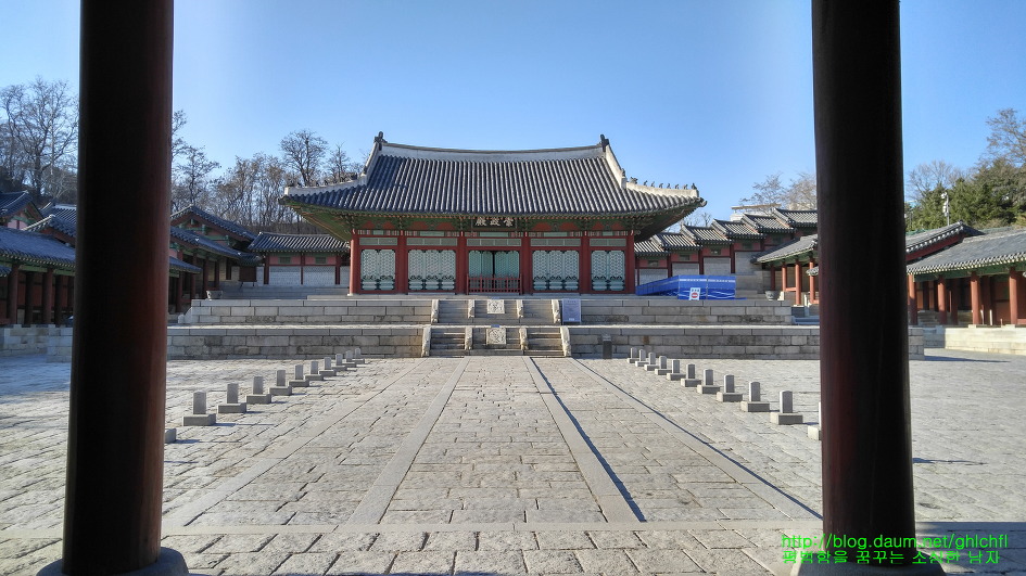숭정전에서 바라본 전경은 덕수궁에서 시청의 높은 건물들을 보았던 때와 크게 다르지 않습니다. 조선시대 가장 큰 건축물이었던 궁궐이 이제는 가장 낮은 자세로 높은 빌딩에 둘러싸여 복잡한 현대인에게 휴식을 안겨주는 공원으로 변화되어 가고 있음에 세월의 무상함을 느끼게 됩니다.