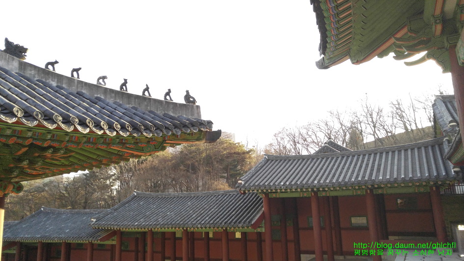 자경전의 회랑을 바라보면서 왠지 부자연스러움이 느껴졌습니다. 왜 이런 느낌을 받는지 주변을 둘러보며 생각을 해보니 조선시대에는 길게 뻗어나갔을 회랑이 이렇게 가로막혀 제한된 공간 속에 머물러 있음에 원인이 있음을 알게 되었습니다. 막혀버린 회랑에서 나라를 잃어버린 아픔을 보게 됩니다.